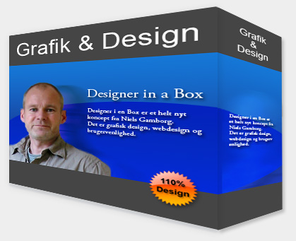 I IT-branchen er det in, at lave fiktive produktkasser. Især når man sælger forskellige IT-systemer. Det gør produktet mere håndgribeligt for kunden. Så hvorfor ikke "Designer in a Box". ;-) Kassen er lavet i Photoshop uden brug af 3D software. |