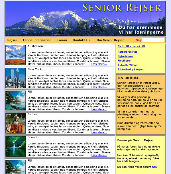 Kommunikationsopgave. Målgruppen er seniorer med lyst til at rejse. Jeg har vægtet det individualistiske og personlige og